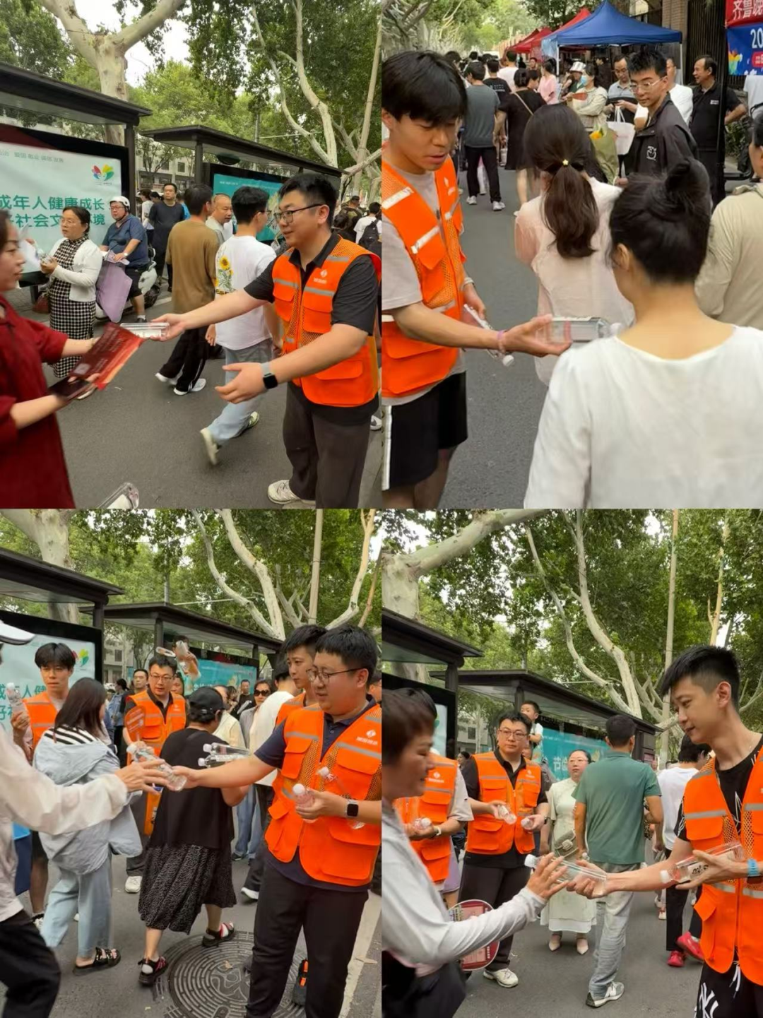 早上7点,志愿者们已在济南七中考点完成服务站点布置。现场不仅准备了一些防暑物资,还特别摆放城投集团高考特定款“泉力以赴”瓶装饮用水。志愿者们身着统一服装,为考生和家长递上满载祝福的瓶装水。此外,志愿服务队还协助维持考点周边秩序,用细致服务传递城市温度。
